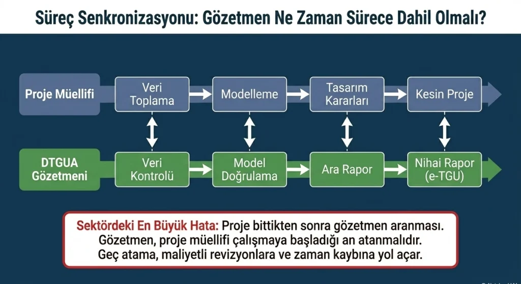 Statek olarak biz de sahada gözlemlediğimiz en yaygın sorunu not düşmek isteriz: Yapı sahipleri çoğu zaman gözetmeni “son anda” arıyor ve proje bitmek üzereyken sürece dahil ediyor. Oysa tasarım gözetmeninin proje müellifinin çalışmaya başlamasıyla birlikte atanması gerekiyor. Geç kalan atama, hem projede maliyetli revizyonlara hem de süreçte gecikmelere yol açıyor.
